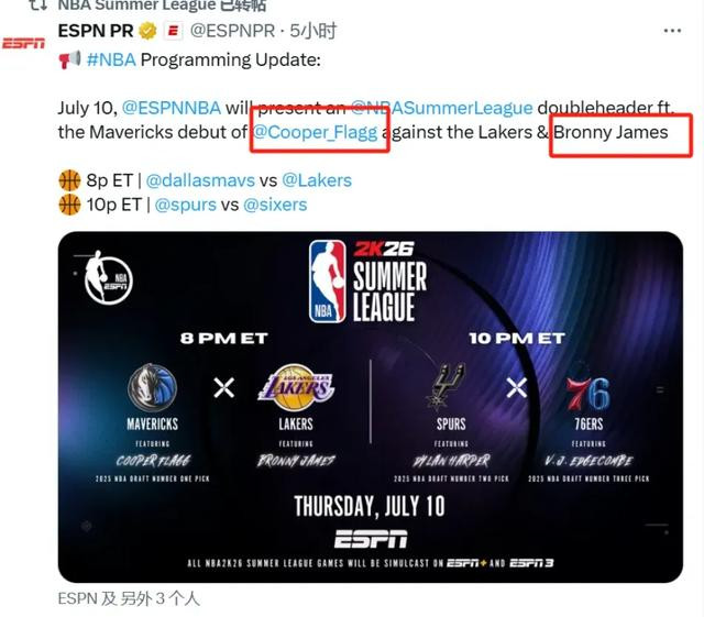 上个赛季,夏联热度最高的几场比赛都是布朗尼领衔那几场,当他后来宣布最后几场不打以后,湖人的热度瞬间就降下来了。