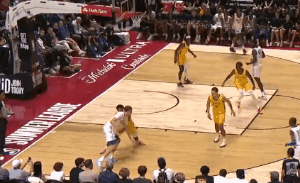 最后时刻经常轮换到禁区防五号位,也有飞天大帽。