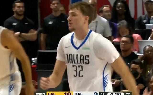 但之后夏联节奏起来后,弗拉格明显就是独行侠能力最强的球员,防守制造由守转攻后在两个人中间突破完成扣篮!